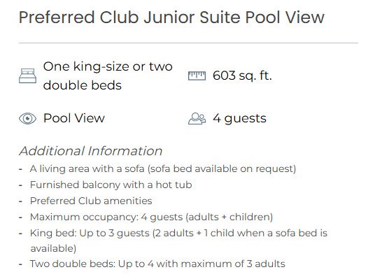 (Includes VIP private check-in/out, access to an exclusive lounge with food/drinks, an adults-only pool/bar, upgraded minibar, and butler service) If you are ready to experience an even higher level of all-inclusive luxury, the Preferred Club is for you. Enjoy an upgraded suite, access to an exclusive lounge, special concierge service and other enhanced amenities.